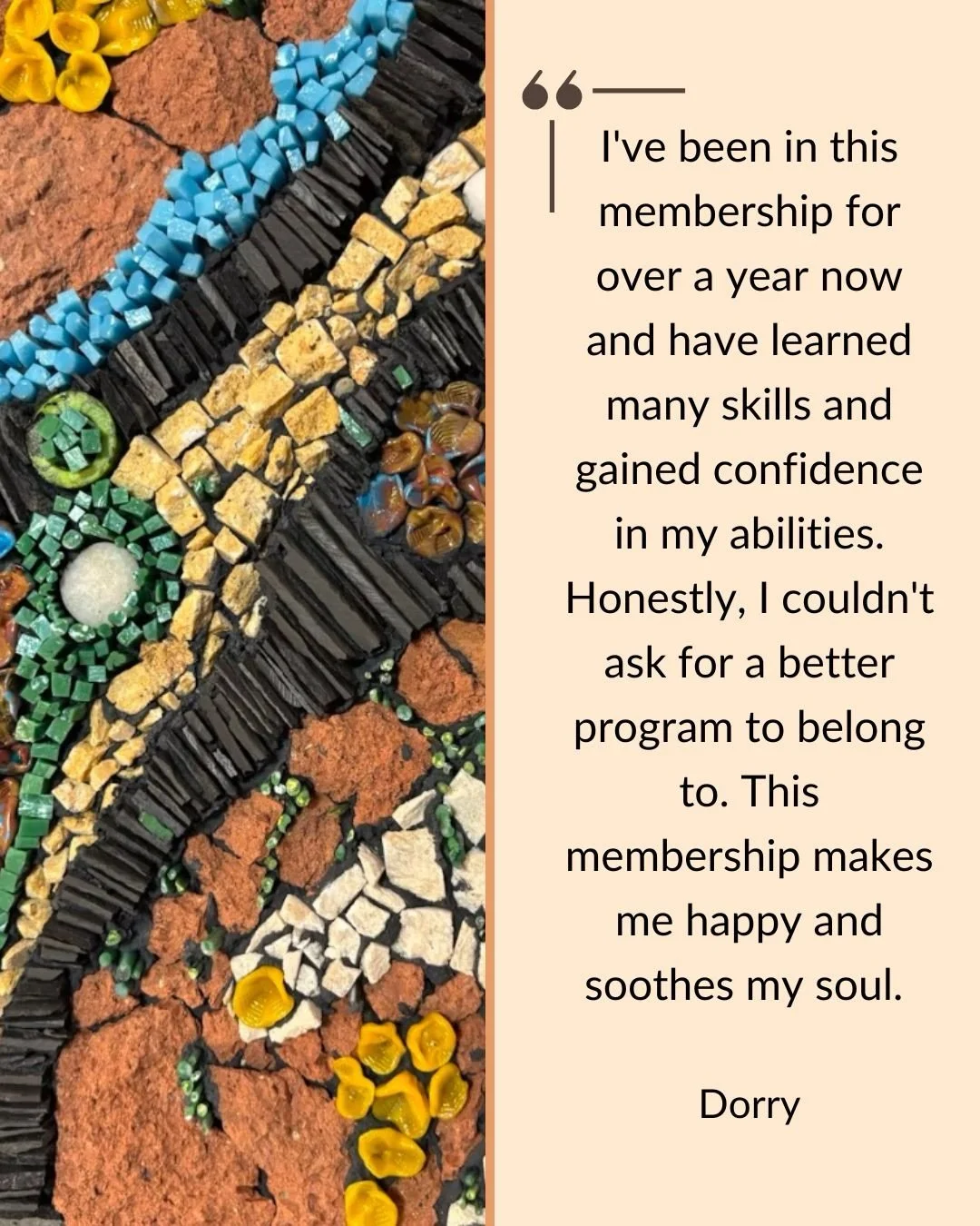 I teach a monthly live class inside my membership programme. Join the community for lots of inspiration and tips for making mosaics